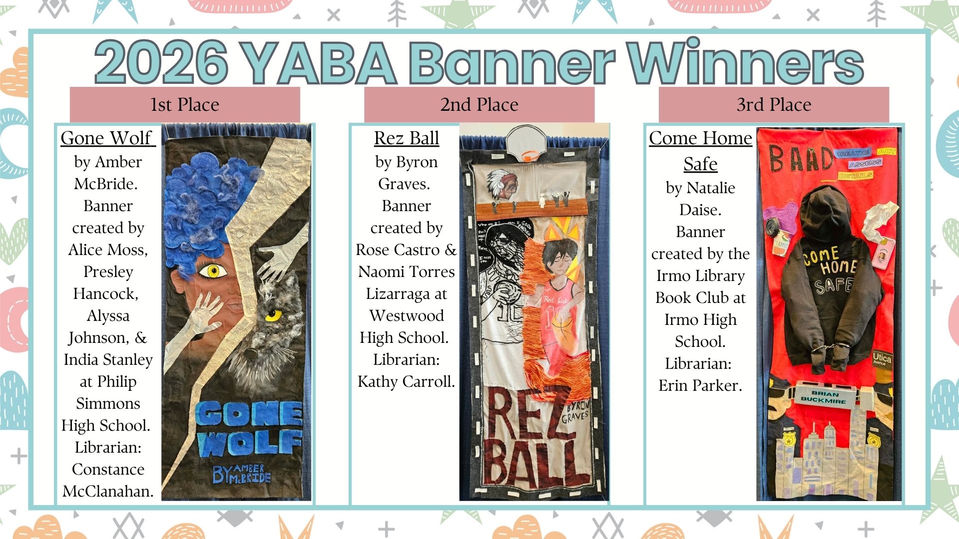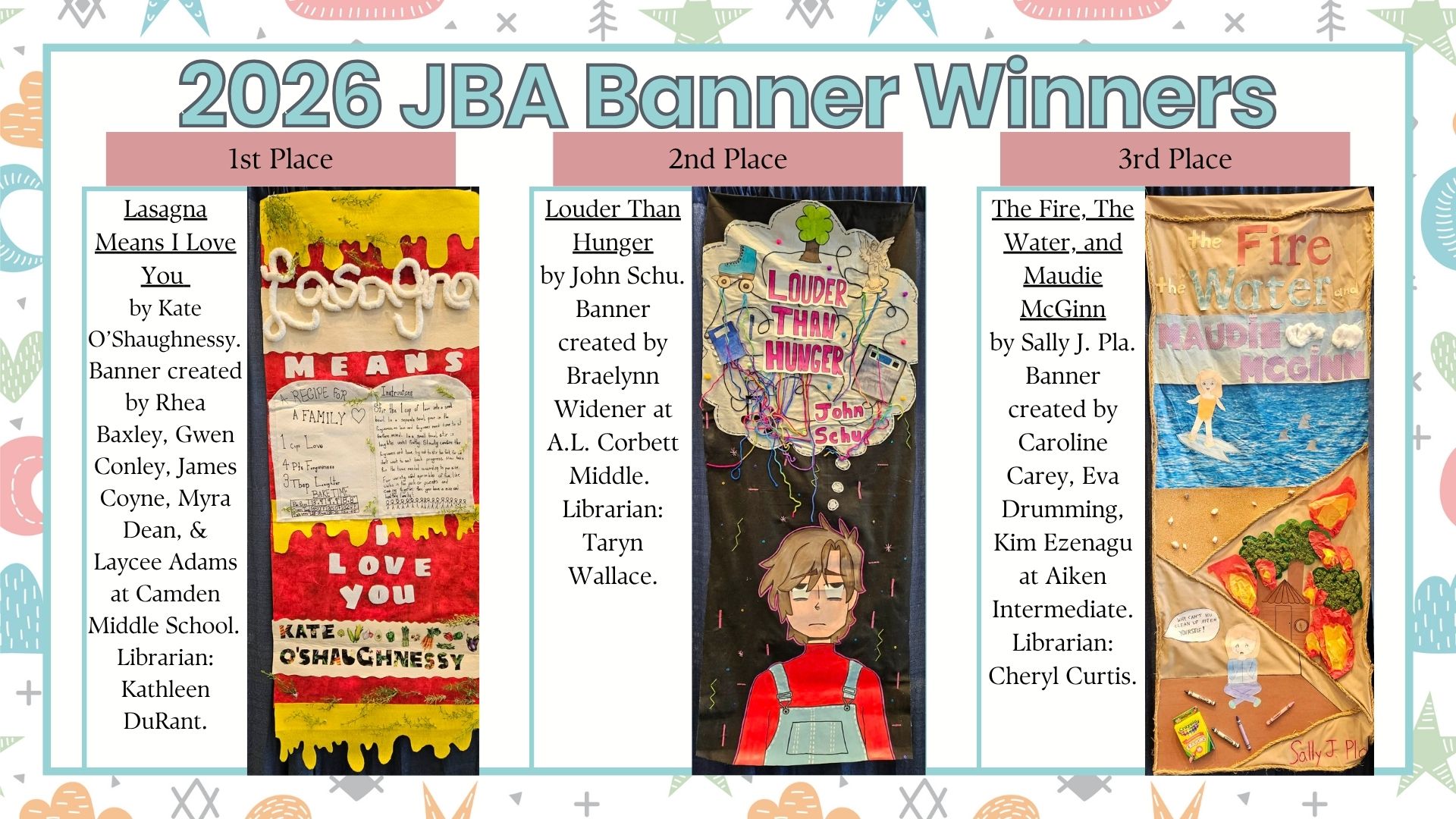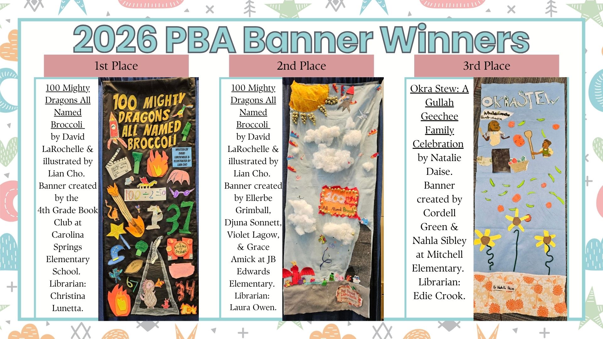 Please review the Book Award Banner Judging Rubric for specific details judges will be looking for when reviewing the banners. Each banner will be judged on the authenticity of the art as it relates to the book as well as on the artistic quality of the banner. All artwork must be the original work of the child(ren) involved. The banner must be a student project. Adult input should be advisory in nature and kept to the minimum required by the age group participating.
