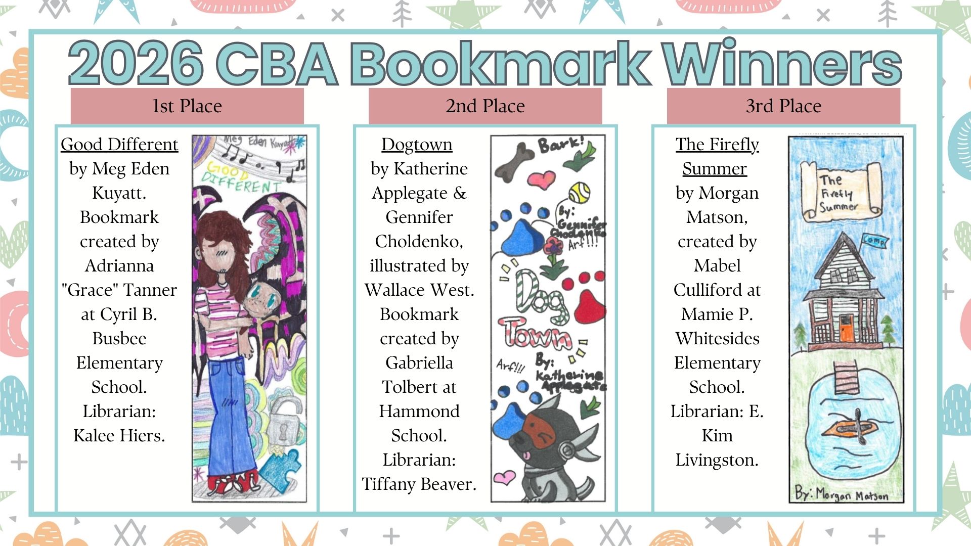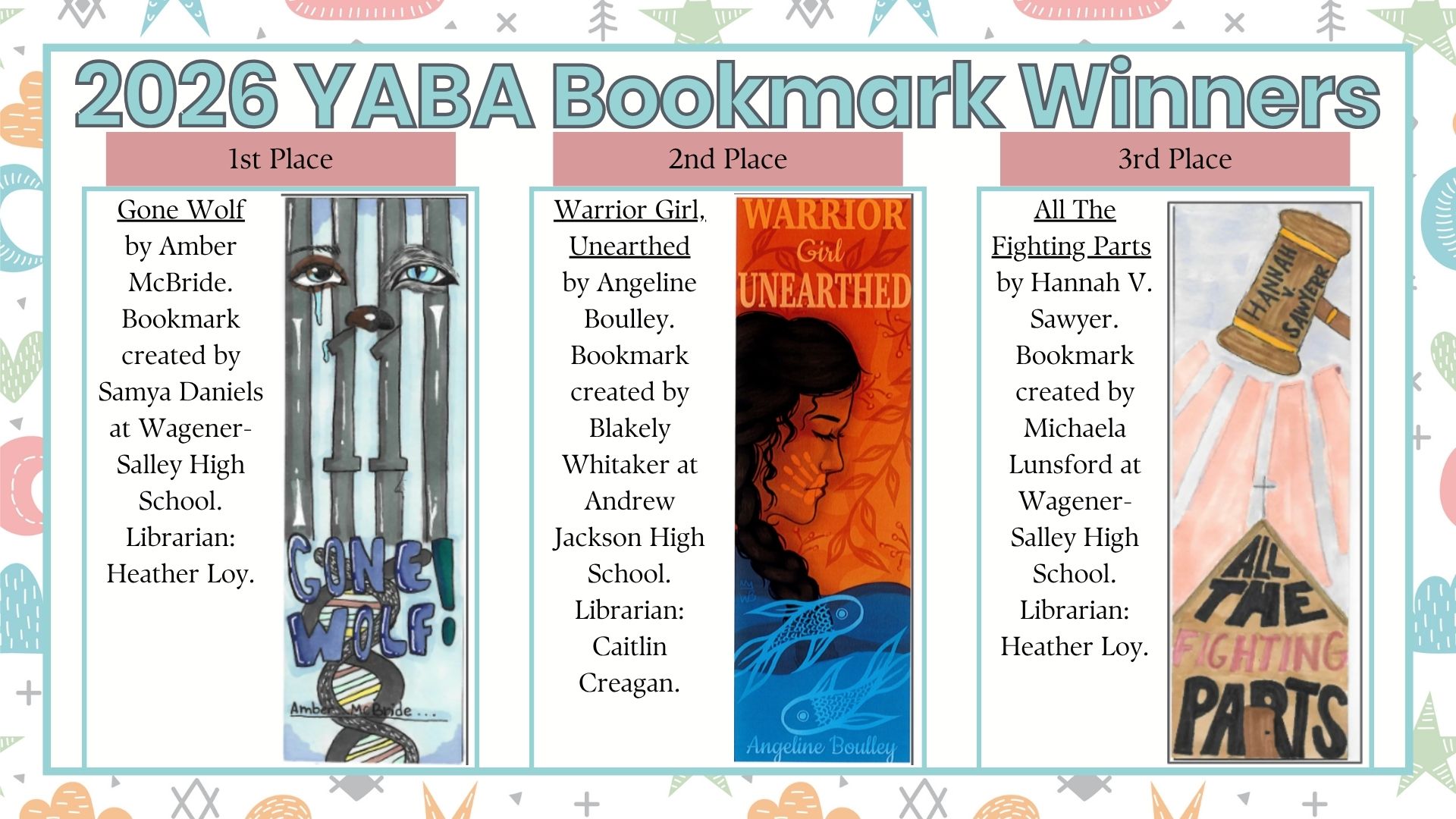 The deadline for entry into the 2025-2026 Book Award Bookmark contest is March 4, 2026.